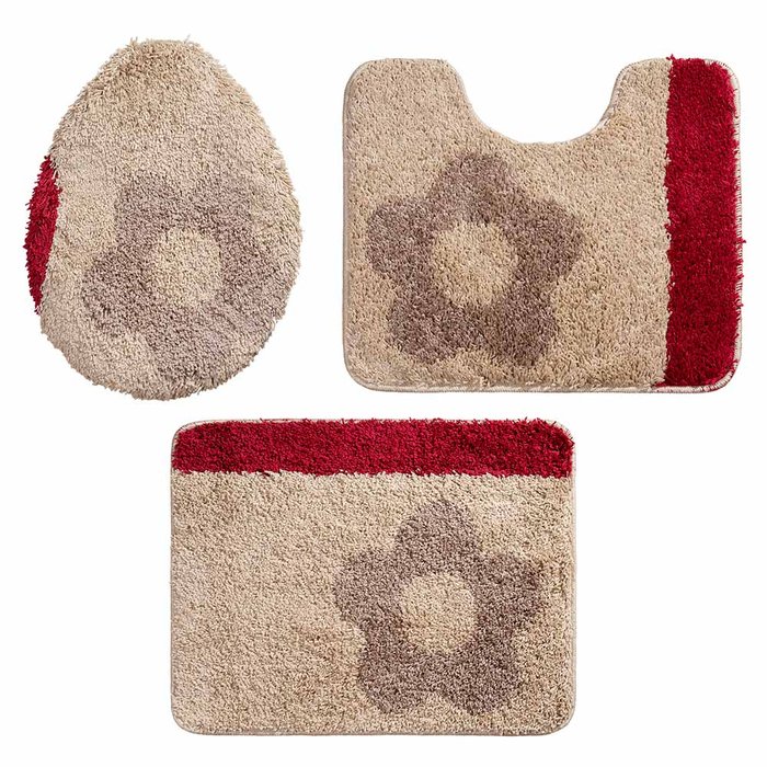 Jogo de Tapetes para Banheiro 3 Peças Jolitex Riviera Flor Bege