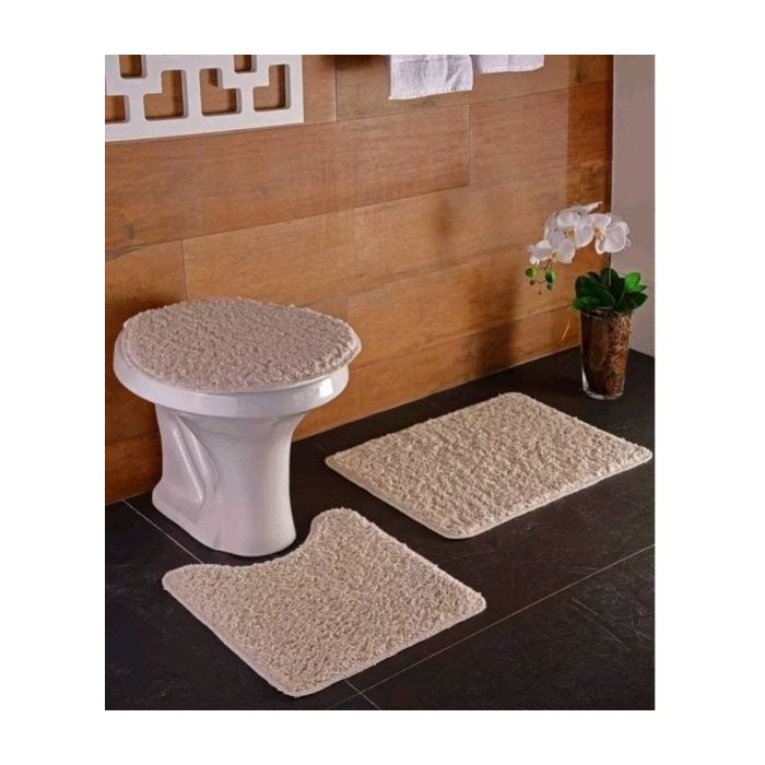 Medidas: 1 Tapete 45 x 60cm, 1 Tapete contorno do vaso 45 x 45cm, 1 tampo do vaso 42 x 45cm