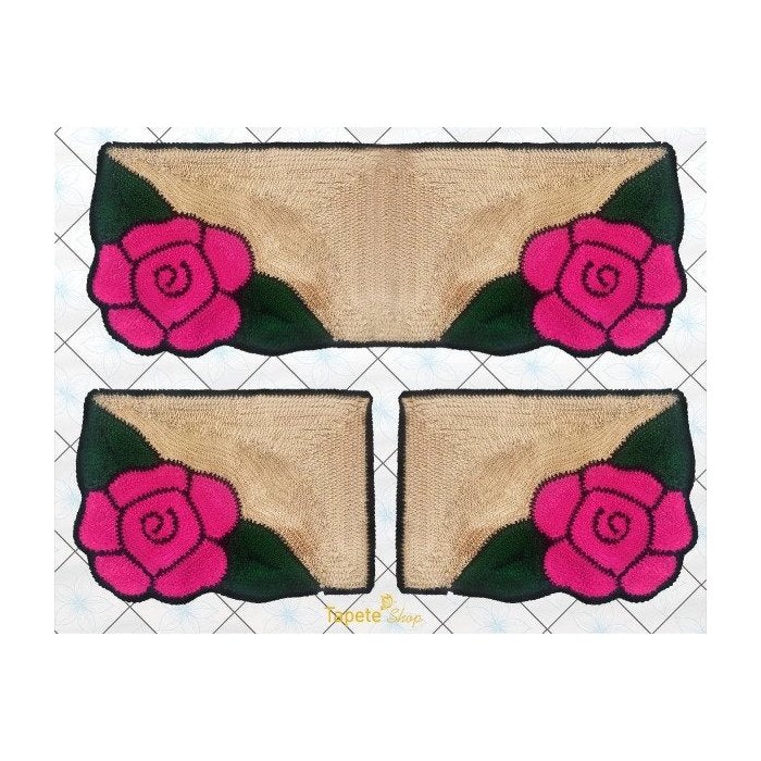 Jogo de Tapetes para Cozinha ou Quarto Rosas com Bege - 3 Peças Frufru