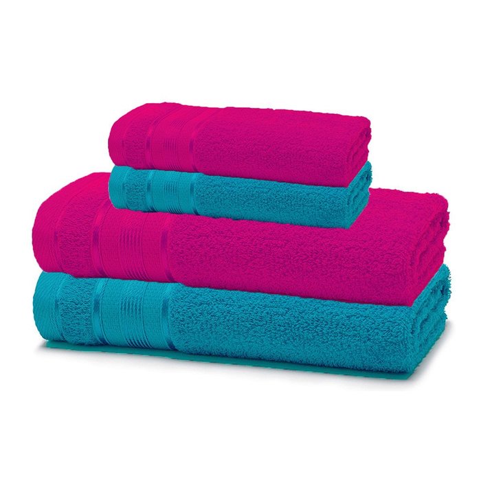 Jogo de Toalha 4 Peças - Banhão - Brilhante - 100% Algodão - Brk Cor: Pink / Turquesa