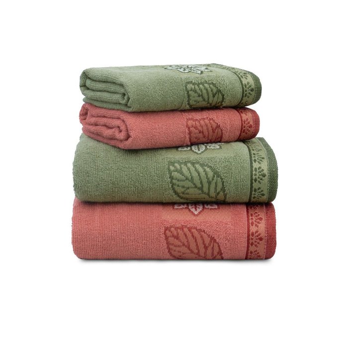 Jogo de Toalha 4 Peças - Folliage - Felpuda - 100% Algodão - Appel Cor: Telha / Verde