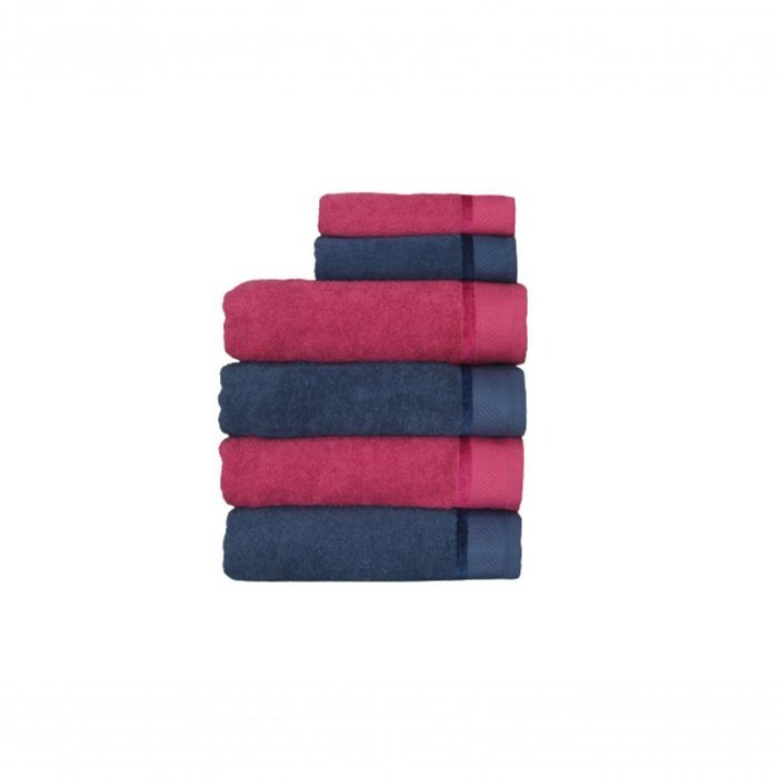 Jogo De Toalha Banhão 6 Peças Eleganz - 4 Banhão E 2 Rosto Azul Noite E Fúcsia