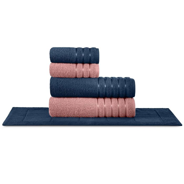 Jogo de Toalha Banhão Teka Comfort 5 Peças Azul Marinho/rose Azul Marinho/rose