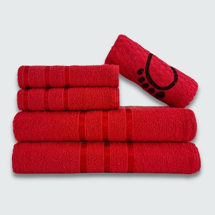 Jogo de Toalha Banho 5 Peças Verona 100% Algodão Vermelho