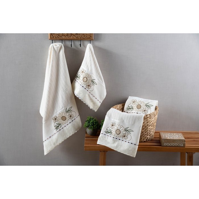 Jogo de Toalha Bordado Caramelo 4 Peças 100% Algodão Bordados Vitória CREME