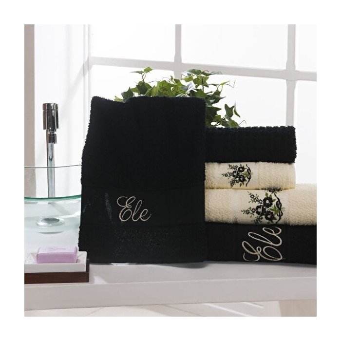 Jogo de Toalha Elegance Ele/Ela 05 Peças Bordadas - PRETO/CREME PRETO/CREME