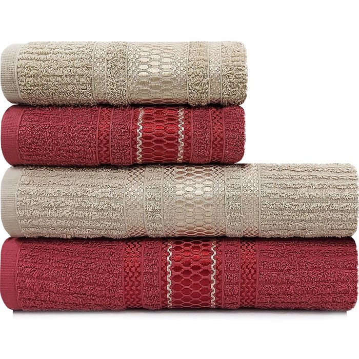 Jogo de Toalhas 4 Peças Banhão Gigante + Rosto 100% Algodão Capri Emcompre Marcotex BEGE VERMELHO