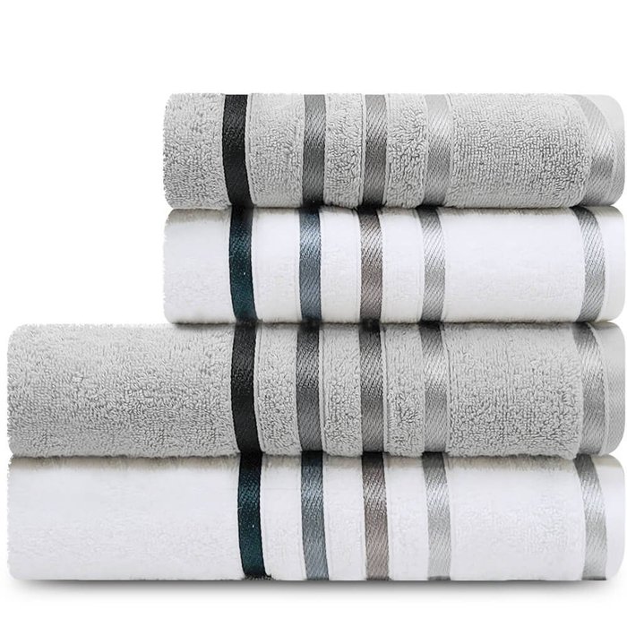Jogo de Toalhas 4 Peças Banhão Gigante + Rosto Fio Penteado Lumina Karsten - Emcompre BRANCO CINZA