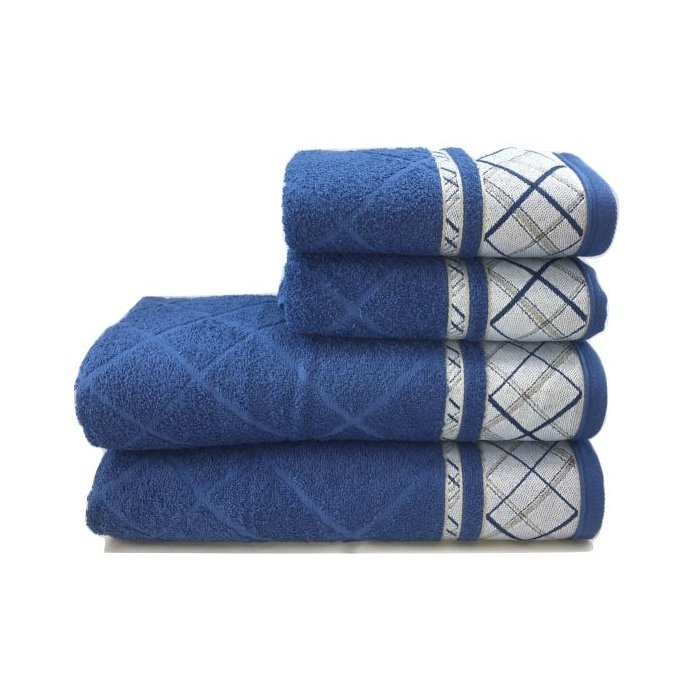 Jogo De Toalhas 4 Peças Jacquard Premium Fj-6004 Azul Escuro Dohler