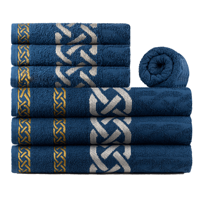 Jogo de Toalhas 6pçs 100% Algodão Jacquard Pérsia - 3 Banho + 3 Rosto + 1 Piso (Brinde) Azul Marinho -