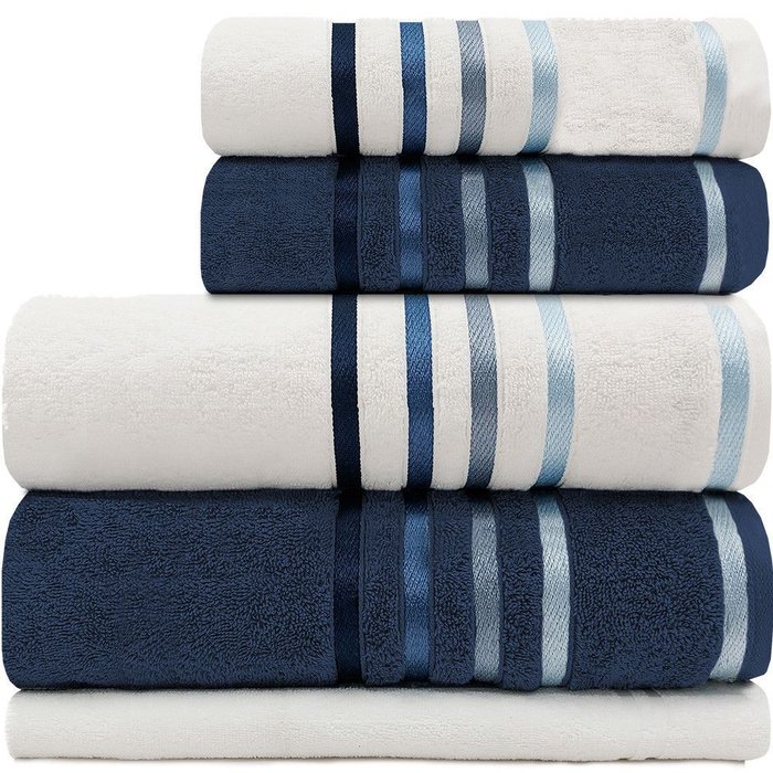 Jogo de Toalhas Banhão Gigante Karsten Lumina 5 Peças 100 Algodão BRANCO AZUL E NAVAL