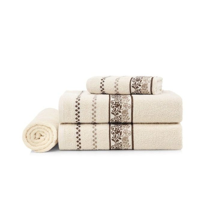 O Jogo de toalhas com 4 peças é o mais completo pois contém diferentes peças que são necessárias para o dia a dia.O Jogo de banho Clarissa é confeccionado em jacquard com gramatura de 360g/m² aliada com a tecnologia softmax garantem ótima absorção e um toque macio. Seu design possui um estilo romântico e delicado com corpo bege e barra em arabescos marrom. Para garantir mais qualidade possuem o antipilling, que é um tratamento para retirar fibras soltas no tecido e evitar a formação de pillings (bolinhas), com esses acabamentos as toalhas têm maior resistência às lavagens e ao uso diário. No jogo de toalhas Clarissa contém: