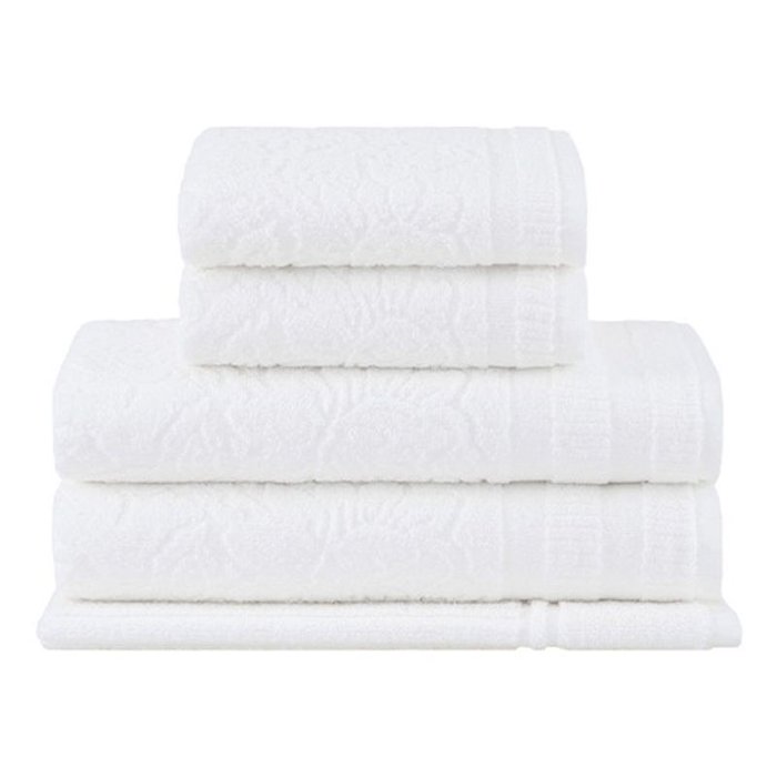 Mais sobre o Produto:Produzido com 100% algodão, as peças do jogo incluem:1 toalha piso 48x70cm2 toalhas rosto 48x80cm2 toalhas banho 70x135cm