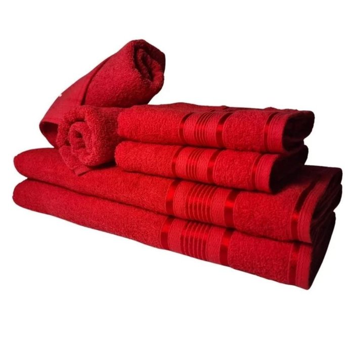 Jogo de Toalhas Egito 2 Banho 2 Rosto 2 Tapete Vermelho Única