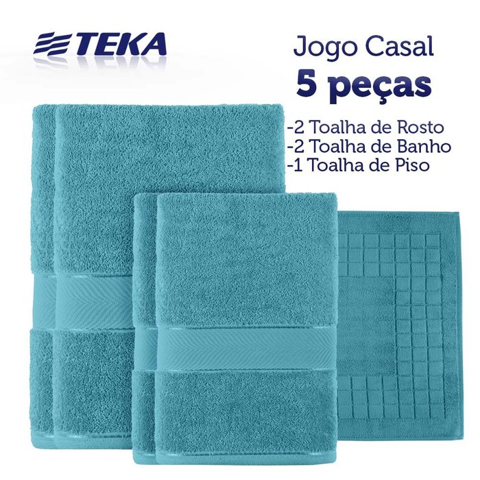Jogo de Toalhas Teka Duomo 5 Peças 2 Banho e 2 Rosto 1 Toalha de Piso Cor Azul Claro