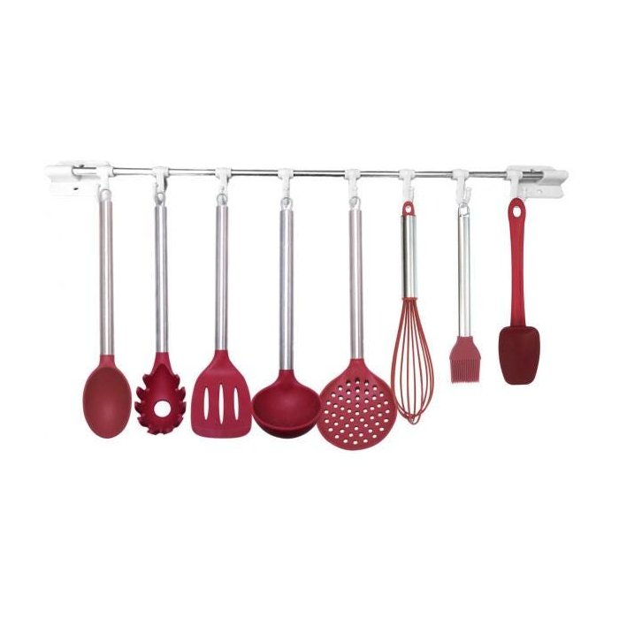 Jogo De Utensílios Silicone 8 Peças Premium E Suporte Parede