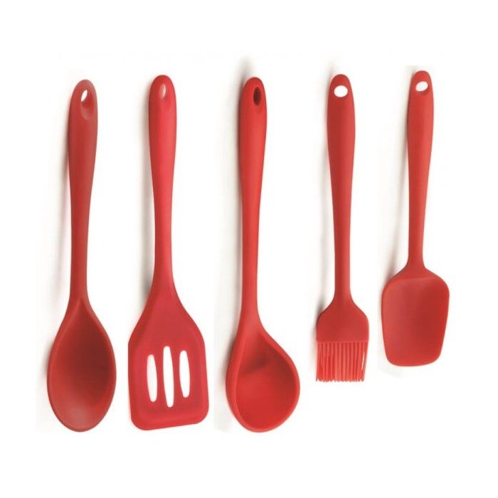 Jogo De Utensílios Silicone Vermelho Premium 5 Peças - Mimo Style