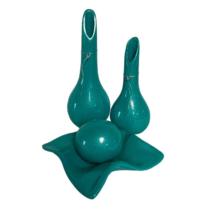 Jogo de Vasos Par Lâmpadas e Centro de Mesa em Cerâmica - Turquesa