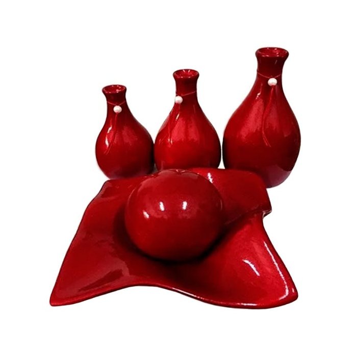Jogo de Vasos Trio Garrafas e Centro de Mesa em Cerâmica - Vermelho