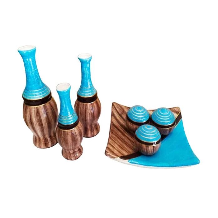 Jogo de Vasos Trio Grego e Centro de Mesa 3 Esferas em Cerâmica - Azul