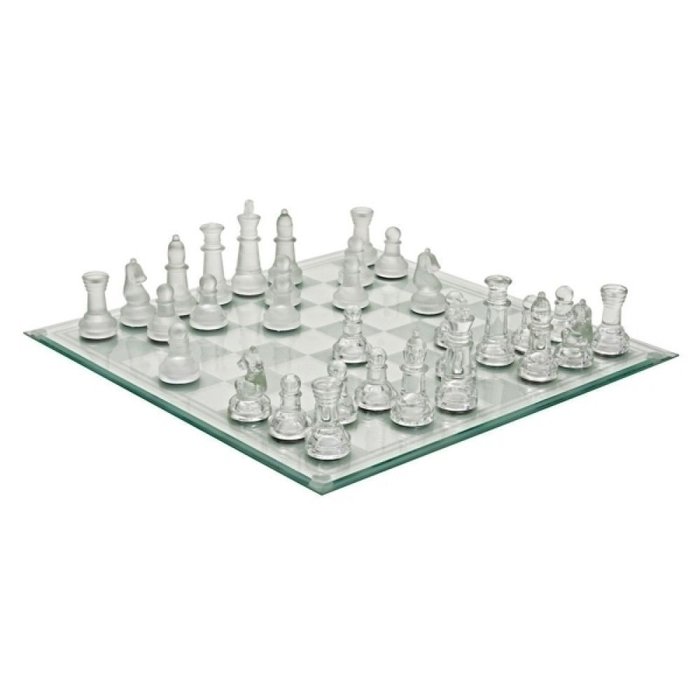 Jogo de Xadrez com Tabuleiro e Pecas de Vidro
