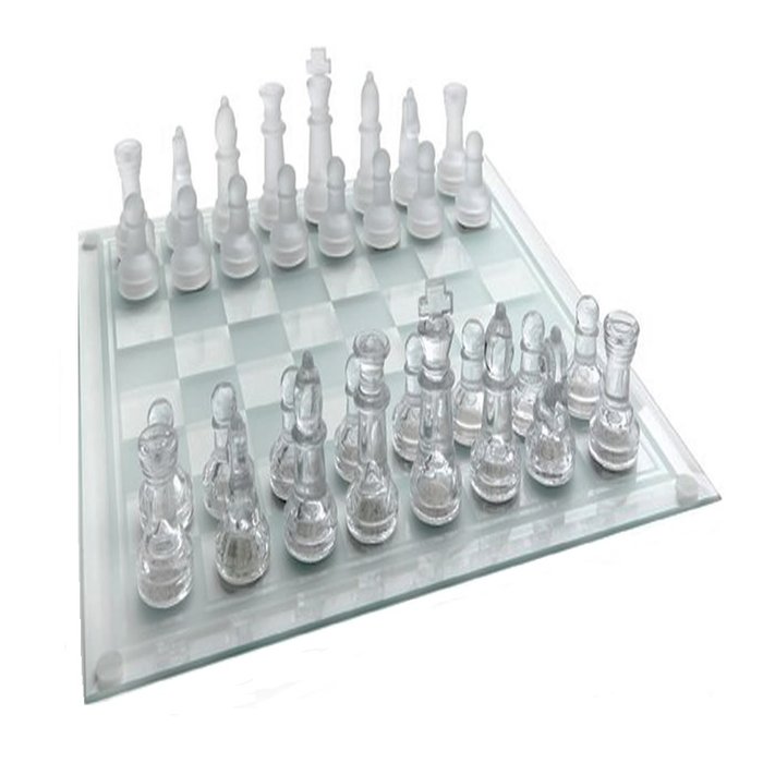 Jogo de xadrez tabuleiro vidro transparente fosco 25x25 cm
