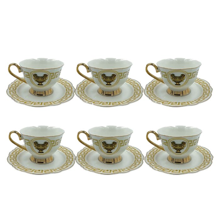 Jogo de Xícara Branco com Dourado para Café e Chá - 12 Peças Preto com Prata