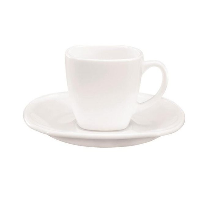 Jogo de xícara e pires quadrado para café 100 ml vidro opal