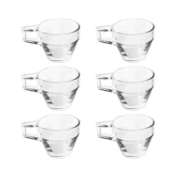 Conjunto que não pode faltar na casa dos amantes de café, esse jogo com 6 canecas de 90ml é compatível com as cafeteiras Dolce Gusto, Nespresso e 3 Corações, confeccionadas em vidro cristalino, possui alça que proporciona firmeza e segurança na hora do manuseio.