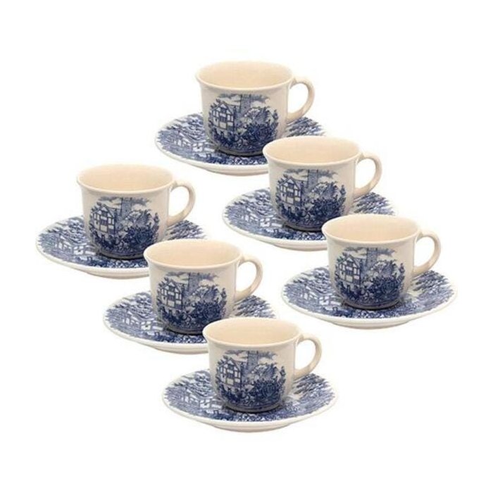 Jogo de Xícaras de Chá 12 Peças Cerâmica Biona Cena Inglesa - Oxford
