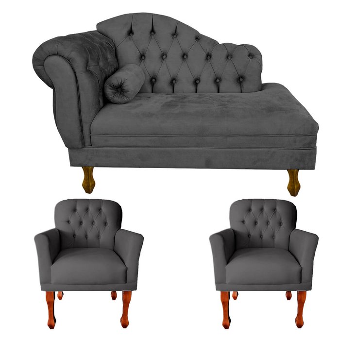 Jogo Divã + 2 Poltronas P Consultório e Clínica Psicanálise:cinza Escuro