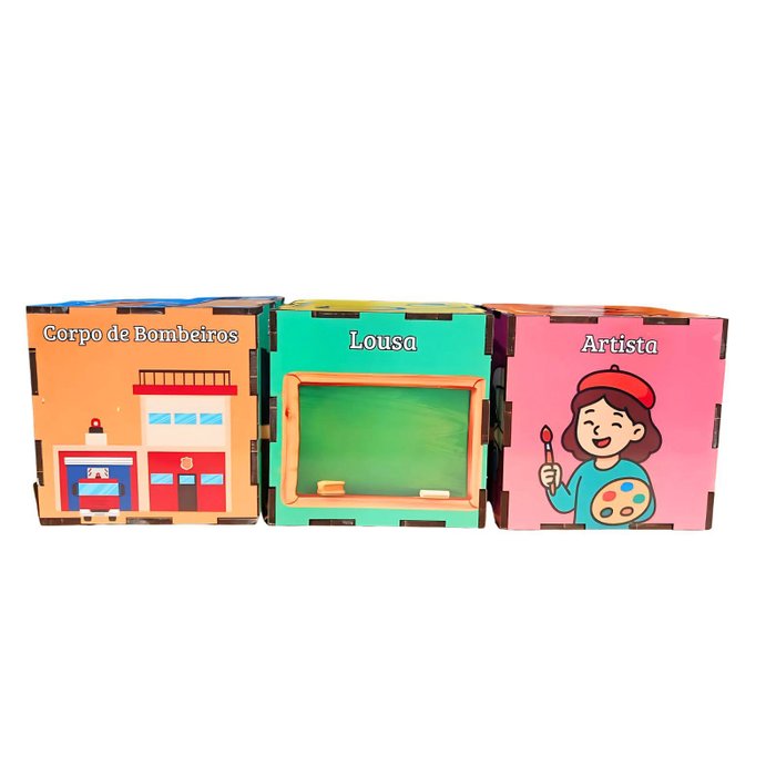 Jogo Educativo das Profissões com 3 Cubos em MDF Para Crianças