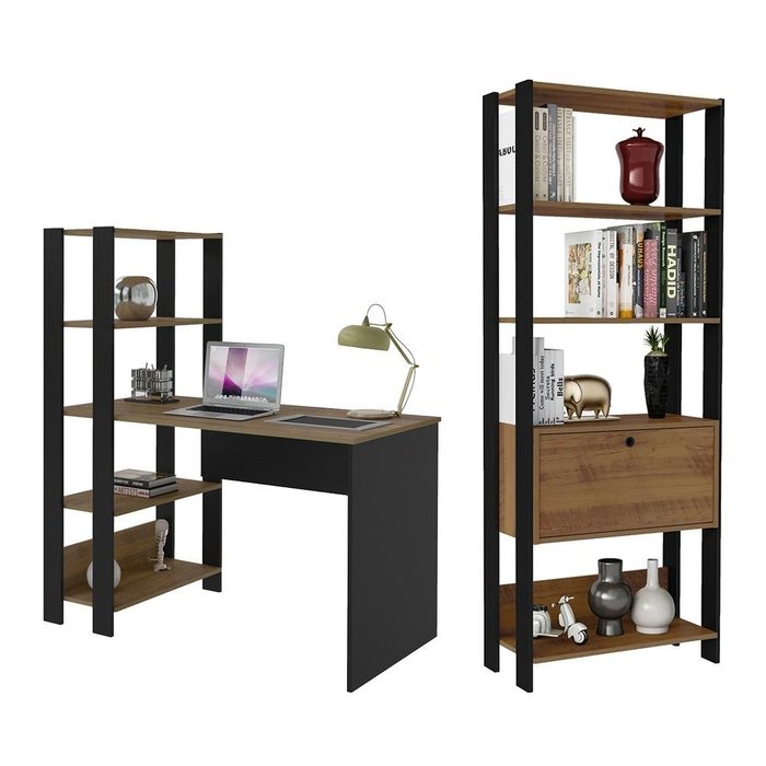 Jogo Escrivaninha e Estante Volker Pinho Preto