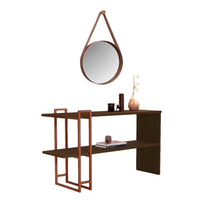 Jogo Espelho com Alça e Aparador Manchester Canela Bronze Castanheira