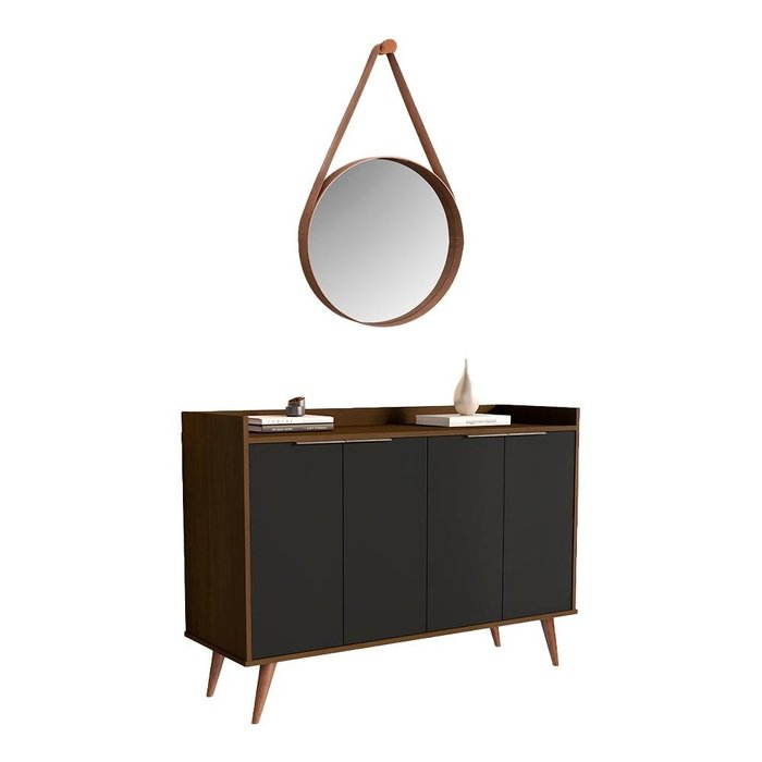 Jogo Espelho com Alça e Buffet Cezena Canela Preto Castanheiro Canela/Preto