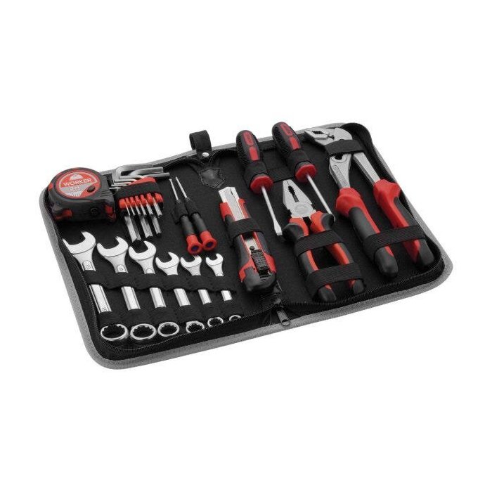 Jogo de ferramentas médio; possui 23 peças que possibilitam uma diversidade de trabalhos, os produtos são de alta qualidade e resistência, acompanha estojo para guardar as peças sem ocupar espaço, mantendo a organização e facilitando o transporte.