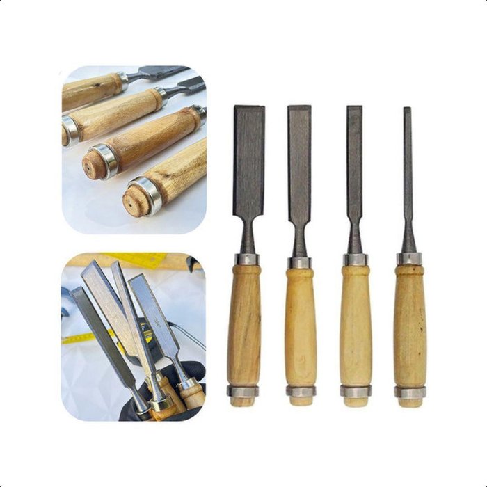 - Formão Chanfrado C/ Cabo de Madeira C/ 4 Peças