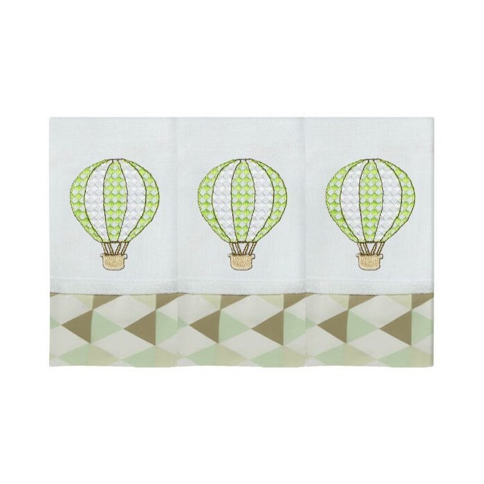 Jogo Fralda de Boca 100% Alg. 3 Peças Nanna Baby - Borbado Balão Verde
