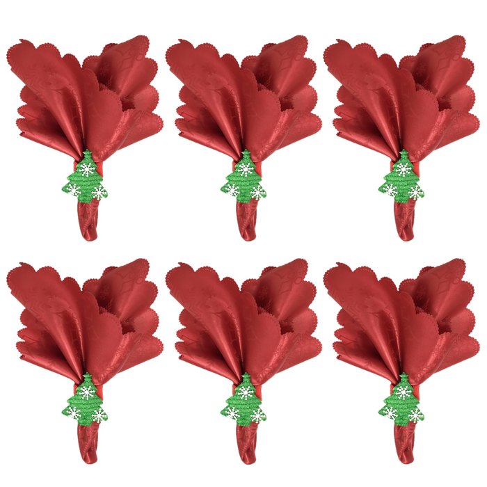 Jogo Guardanapo Tecido Vermelho Decorado Bico de Papagaio e Argola Mini Pinheiro Natal 6 Unidades -