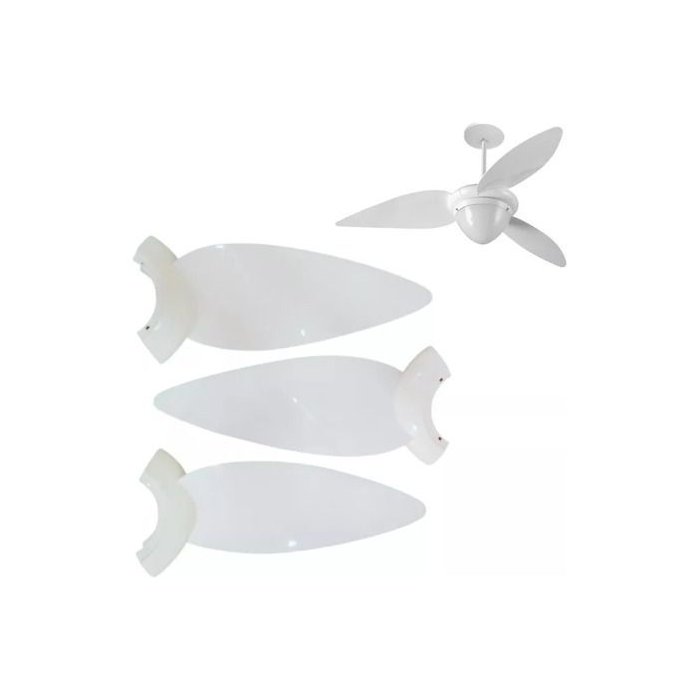 Jogo Hélice C/ 3 Pás para Ventilador Teto Aliseu Tradicional Branco Branco