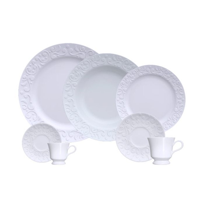 O aparelho de Jantar Tassel conta com 70 peças, divididas entre Pratos Rasos, Pratos Fundos, Pratos de Sobremesa, Pires e Xícaras, é perfeito para completar seu jantar ou café. Aparelho de jantar composto por peças fabricadas em porcelana branca de ótima resistência e que é livre de metais pesados. A linha Tassel faz uma homenagem a uma importante referência arquitetônica, o Hotel Tassel. Construído entre 1892 a 1893, em Bruxelas, guarda nos detalhes elementos característicos do Art Nouveau. Predominam as curvas e adornos inspirados na natureza no interior e fachada da construção.Com um toque clássico e elegante, esta linha transformará suas refeições em um momento ainda mais especial toda boa cozinha é um lugar de transformação.