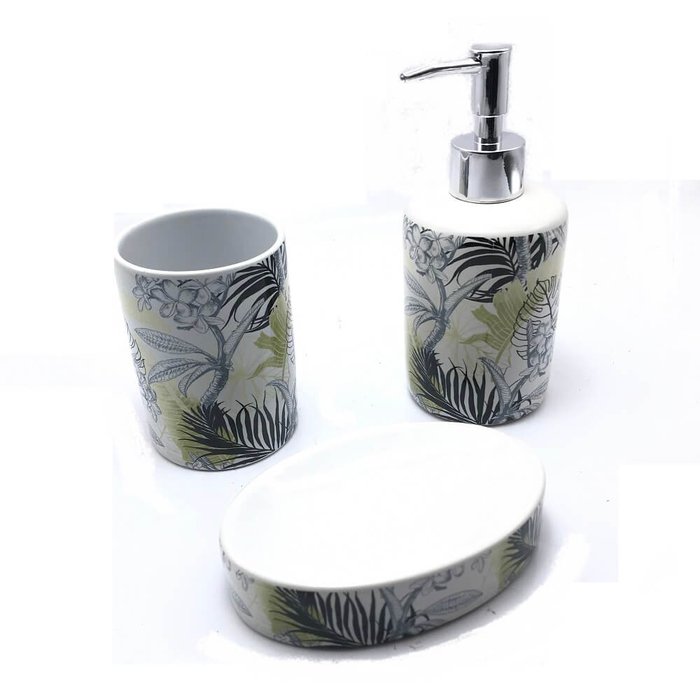 Jogo Kit De Banheiro Cerâmica Nature 3 Peças
