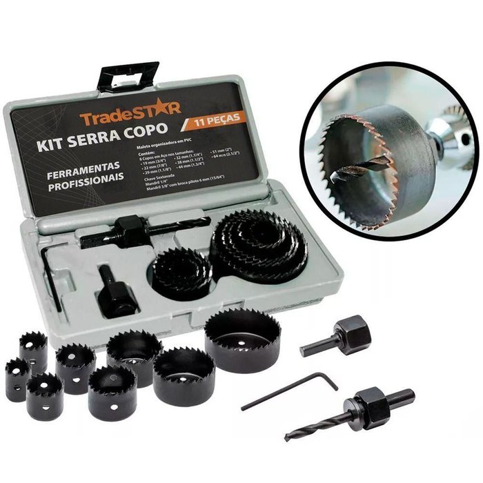 Jogo Kit Serra Copo para Madeira Gesso Pvc 11 Peças Serras