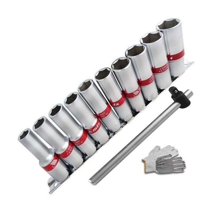 Jogo Kit Soquete 1/2 Longo Sextavado 10 Pçs com cabo T + Brinde