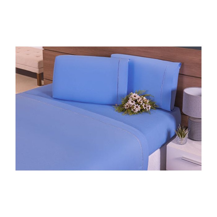 Jogo Lençol 4 Peças Cama Viúva Percal 200 Fios Azul