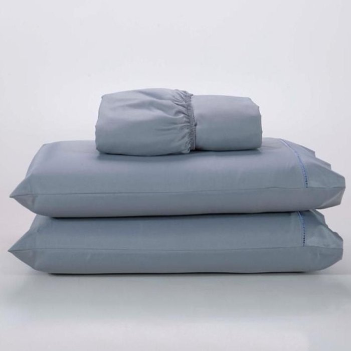 Jogo Lençol 400 Fios Ponto Palito Cama Casal 3pçs Poliéster - Cinza Cinza