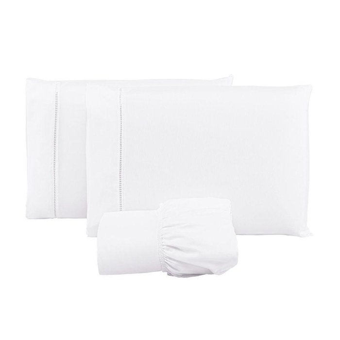 Jogo Lençol 400 Fios Ponto Palito Cama King 3pçs Poliéster - Branco