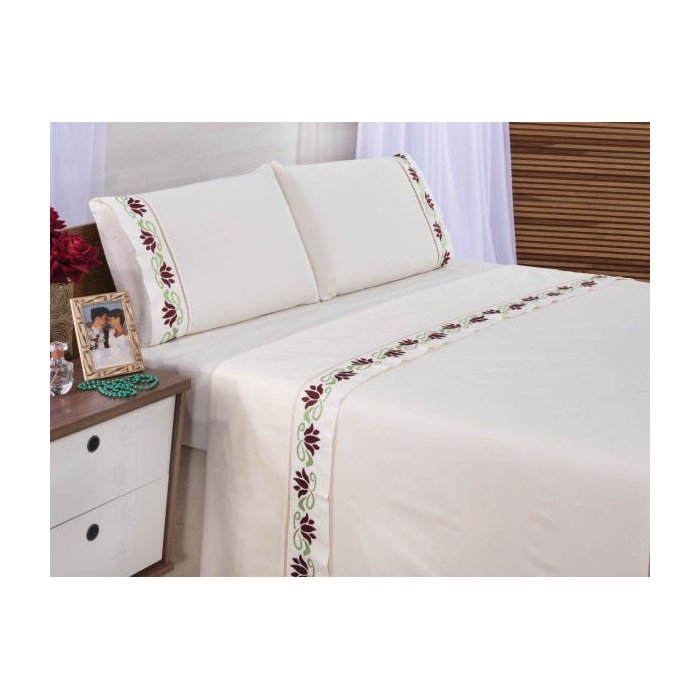 Jogo Lençol Cama Casal King Lumiere 4 Pçs Bordado Palha