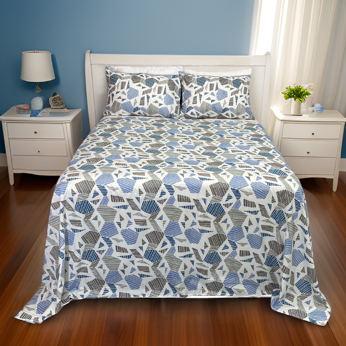 Jogo Lençol Cama Casal Percal 4 Peças Estampado Formas