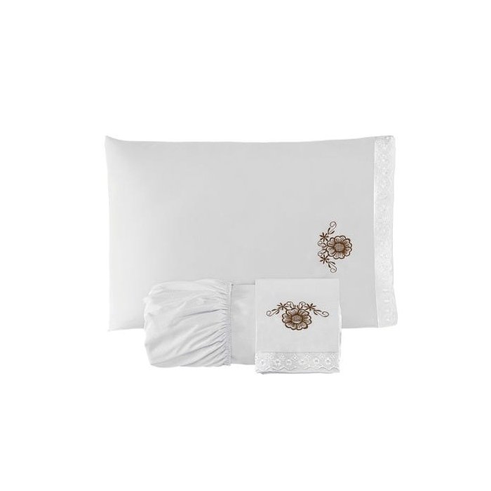 jogo lençol casal, bordado crivo, 4 peças. algodão, 180 fios